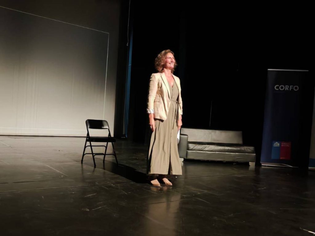 Uno de los momentos más destacados de la jornada fue la charla dramatizada “Reflexiones en torno a las Mujeres, Agua y Territorios: Semillas para Mujeres Futuras”, presentada por la reconocida actriz nacional Francisca Imboden, quien a través de relatos recogidos de distintas mujeres de la Región de Valparaíso dio vida a historias que reflejan su rol histórico en la seguridad alimentaria y su aporte clave en el futuro del agro.