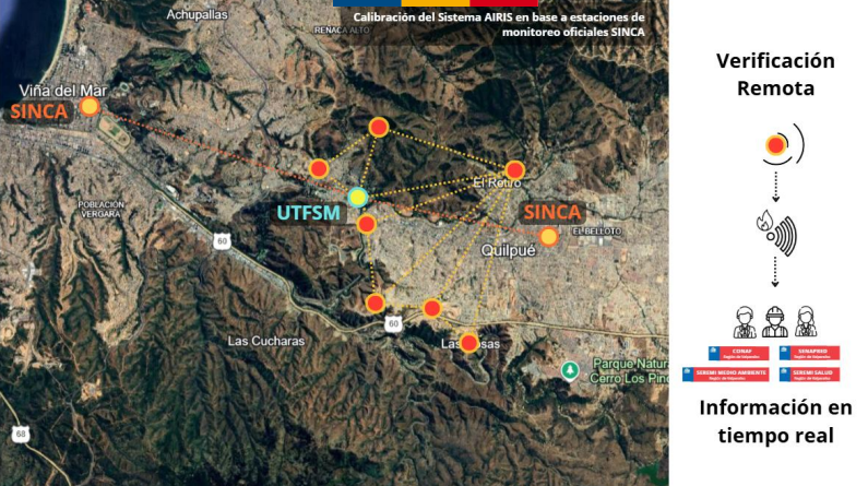 La iniciativa apunta a una brecha crítica: la limitada cobertura territorial de los sistemas actuales de monitoreo de calidad del aire en sectores expuestos a incendios, especialmente en zonas de interfaz urbano-forestal. Frente a ello, AIRIS contempla el despliegue de una red de sensores en puntos estratégicos de Viña del Mar y Quilpué, capaces de medir en tiempo real material particulado fino (MP2,5), variables meteorológicas y gases de interés, con el fin de identificar patrones anómalos y aportar información relevante para procesos de alerta y evacuación preventiva.